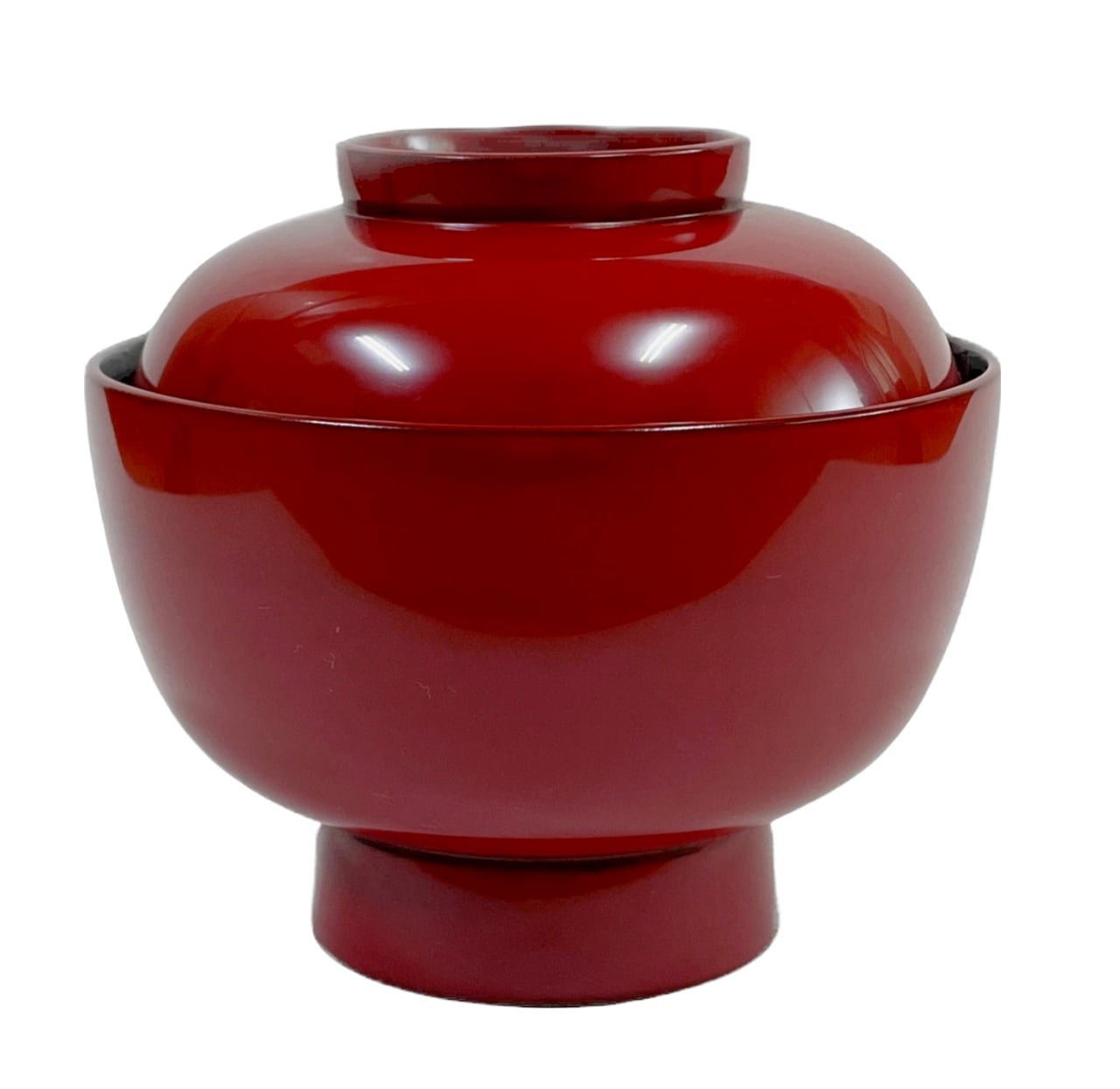 硬くて形状変化の少ない最高級の水目桜材を轆轤で挽き下地から本堅地で仕上げた本格的な吸物椀です 外面を半艶の銀朱塗、内を黒の半艶漆で塗り上げています 少し小ぶりで軽くて堅牢なとても綺麗な使い勝手の良い吸物椀です